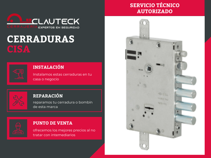 Gracias a esto, desde Clauteck hemos querido apostar por un fabricante que ofrece grandes índices de calidad convirtiéndonos en servicio técnico oficial para las cerraduras CISA. Así, podemos desde instalar alguna de sus cerraduras, reemplazar un cilindro antiguo por uno nuevo de la marca, realizar una copia de llaves o reparar todo tipo de averías que pueda surgir durante la vida útil de estos productos.