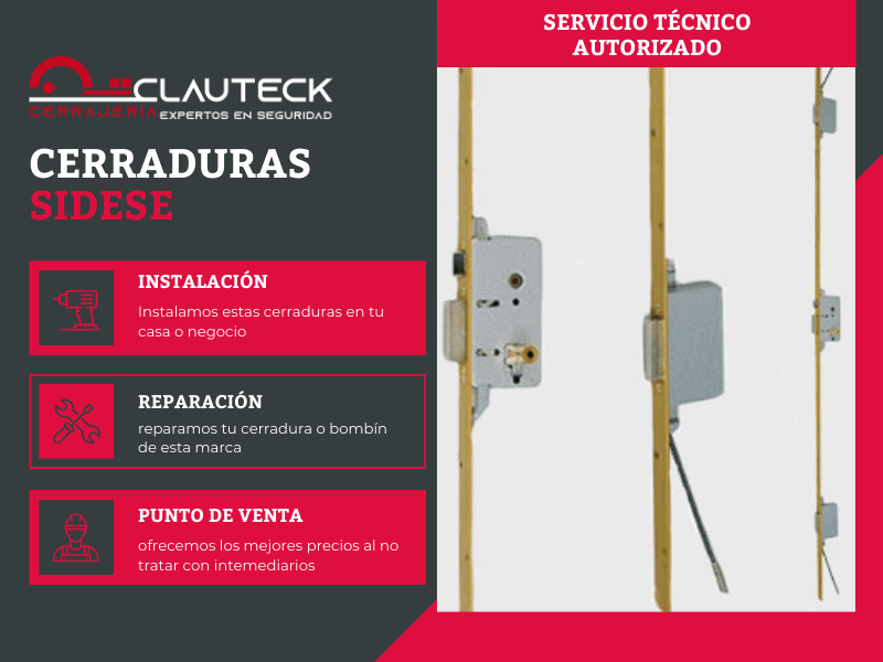 En Clauteck solo apostamos por trabajar con marcas que cuentan con una línea de calidad acorde a lo que nosotros, como expertos cerrajeros en Barcelona, ofrecemos a nuestros clientes. Por este motivo, desde hace algunos años, trabajamos mano a mano con la marca Sidese como uno de sus puntos de servicio técnico oficial. De esta manera, podemos ofrecer las mejores prestaciones en cuestión de instalación y reparación de cualquiera de sus bombines.